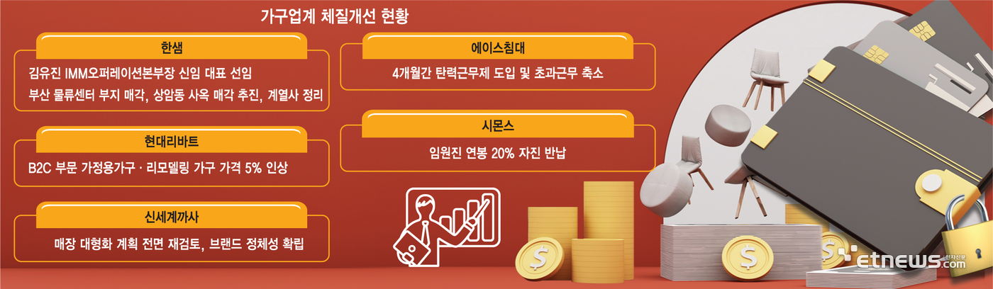 문제는 하반기도 이같은 상황이 지속될 것으로 예상된다는 점이다. 부동산 경기가 회복세를 보이고 있지만 코로나 특수를 누렸던2020~2021년에 비하면 절반 수준에 그친다. 경기 침체가 장기화되면서 가구 소비에 지갑을 닫는 경향이 두드러지고 있다. 업계는 위기 상황을 이겨내기 위한 자구책을 내놓고 '버티기'에 돌입했다.