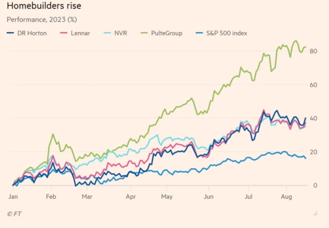 파이낸셜타임스(FT)는 “모기지 금리 상승에 따른 통념을 깬 랠리”라고 평가했다. 통상 모기지 금리가 오르면 주택 시장이 위축되면서 건설사 주가도 하방 압력을 받는다. 그러나 지금 상황은 좀 다르다.
