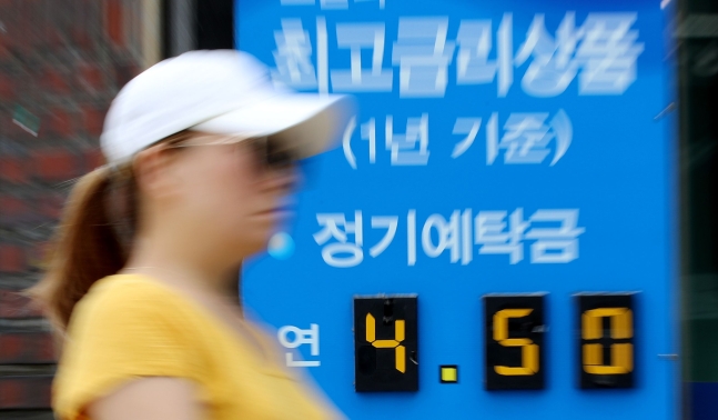 6일 은행연합회에 따르면 전날 기준 국민, 신한, 하나, 우리, 농협 등 5대 은행의 12개월 만기 주요 정기예금 금리는 연 4.00∼4.05%로 나타났다. 연 3.65∼3.70%였던 한 달 전보다 0.35%포인트 상승했다. 79개 저축은행들의 12개월 만기 예금 상품의 평균 금리는 4.20%로, 은행권과 큰 차이가 나지 않는 수준이다.