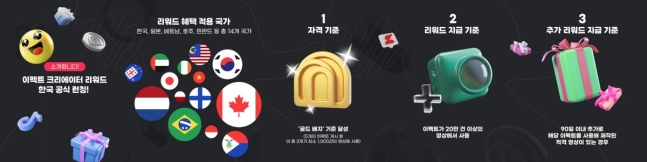 '이펙트 크리에이터 리워드' 프로그램 국내 런칭에 따라 '골드 배지' 기준을 달성하면 리워드를 받을 수 있는 대상이 된다. 골드 배지는 5개의 이펙트를 게시하고 이 가운데 3개 이펙트가 1,000건의 영상에서 사용되는 것을 의미한다. 또한, 이펙트가 20만 건 이상의 영상에서 사용되었을 때부터 보상이 이루어지며, 다음 리워드는 90일 이내 추가로 해당 이펙트를 사용해 제작된 적격 영상이 있으면 받을 수 있다.