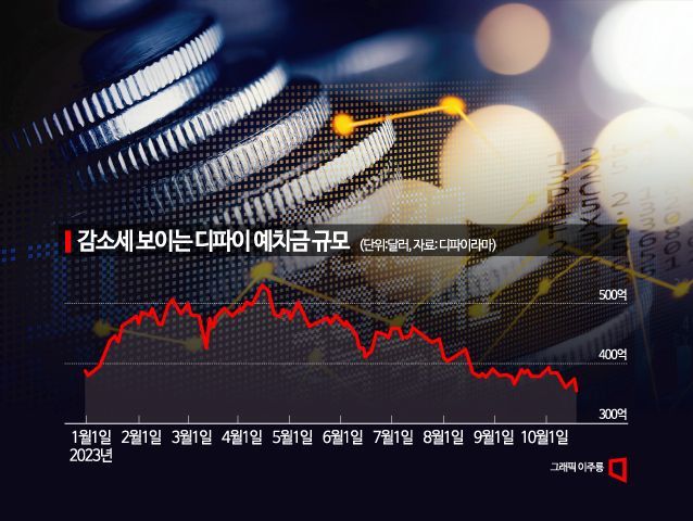 가상자산 시장의 침체기가 길어지면서 디파이(DeFi·탈중앙화 금융) 예치금 규모가 감소세를 보이고 있다. 디파이는 탈중앙화 금융(Decentralized Finance)의 약자로 블록체인 네트워크상에서 은행·증권사·보험사 등 전통적인 금융회사를 거치지 않고 구현된 금융 서비스를 뜻한다.