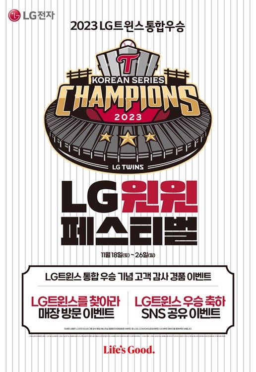 LG전자는 LG를 오랜 기간 함께 응원하고 사랑해 준 고객들에 대한 감사의 의미를 담아 ‘LG 윈윈 페스티벌’을 개최키로 했다. 오는 21일 온라인 브랜드샵 단독 가전제품 할인 행사와 함께 18일부터 26일까지 온라인 브랜드샵과 LG베스트샵 매장에서 우승 축하 인증 이벤트를 연다.