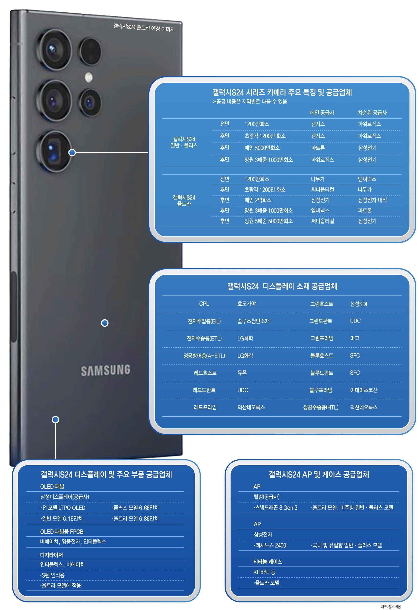 갤럭시S24 디스플레이 및 주요 부품 공급업체 및 특징