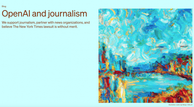 그러자 오픈AI가 곧바로 정면 반박했다. 오픈AI는 지난 8일 공식 블로그에 ‘오픈AI와 저널리즘’이란 반박문을 싣고 “뉴욕타임스의 소송은 근거가 없다(without merit)”고 주장했다. 뉴욕타임스가 전체 맥락에서 벗어난 일부 얘기를 부각시키면서 사안을 왜곡했다는 것이다.