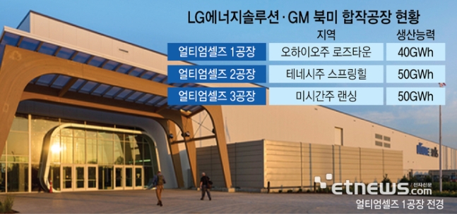 LG에너지솔루션과 GM은 미국 내 합작 공장 3개를 짓기로 했다. 오하이오주 로즈타운에 건설된 얼티엄셀즈 1공장은 40GWh 규모로 지난 2022년 11월 양산을 시작했고, 2공장에 이어 미시간주 랜싱에 들 3공장을 만들고 있다. 3공장은 2공장과 동일한 50GWh 규모로 지난해 하반기 장비 발주를 시작했다. 2공장 가동 시점이 늦어지면서 3공장 구축 완료 시점도 조정될 가능성이 제기되고 있다.