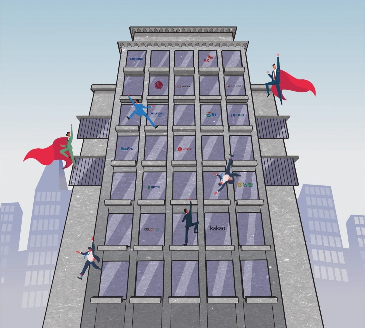 IT, 바이오, 2차전지, 이커머스, 게임, 엔터테인먼트 등 신산업의 성장으로 신규 기업집단이 대거 편입됐다. 10년 전에는 명단에 없던 네이버, 카카오, 셀트리온, 쿠팡, 에코프로, 넷마블, 두나무, 크래프톤, 하이브 등이 100대 그룹 대열에 합류했다. 한국 산업의 변화를 볼 수 있는 대목이다.