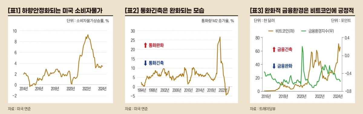 최근에는 2022년 9월 지수가 –0.10으로 고점을 찍은 후 올해 5월 -0.55까지 하락함에 따라 비트코인 가격은 상승하고 있다. 물가가 안정되고 올해 11월 미국 대통령선거가 있음을 감안하면 경기부양을 위해 적어도 연말까지는 금융환경의 완화가 지속될 가능성이 높으며 비트코인 가격에도 일단은 긍적적으로 보인다.다만 비트코인 가격움직임의 성격은 변모할 가능성이 높다. 과거 비트코인 투자자는 단기 고수익을 추구하는 개인 및 헤지펀드였으며 따라서 비트코인 가격 역시 급등락을 반복하였다.