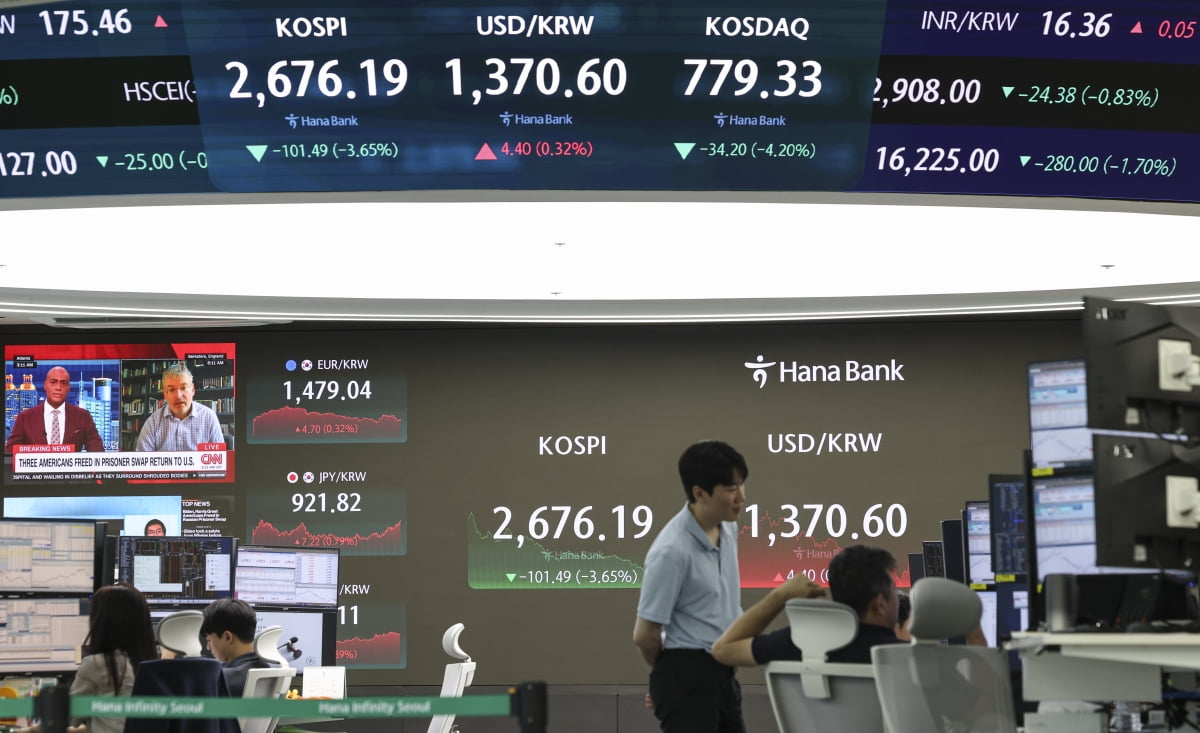 미국발 경기침체 우려로 국내 증시에서 급락세가 이어지며 코스피에 이어 코스닥도 사이드카(프로그램 매도 호가 일시효력정지)가 발동했다.