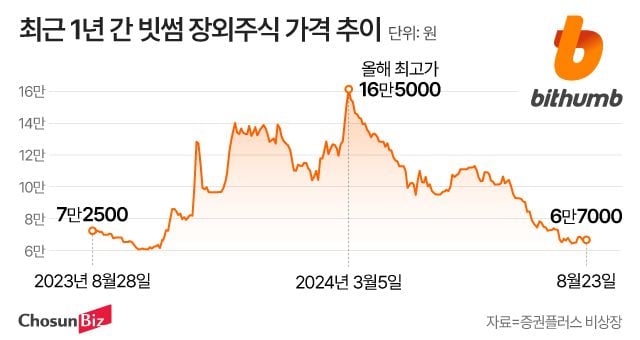빗썸은 내년 증시 입성을 목표로 기업공개(IPO)를 추진 중이다. 장외주식 가격이 계속 하락할 경우 빗썸이 IPO 과정에서 기대만큼 가치를 인정받지 못할 수 있다는 의견이 많다.