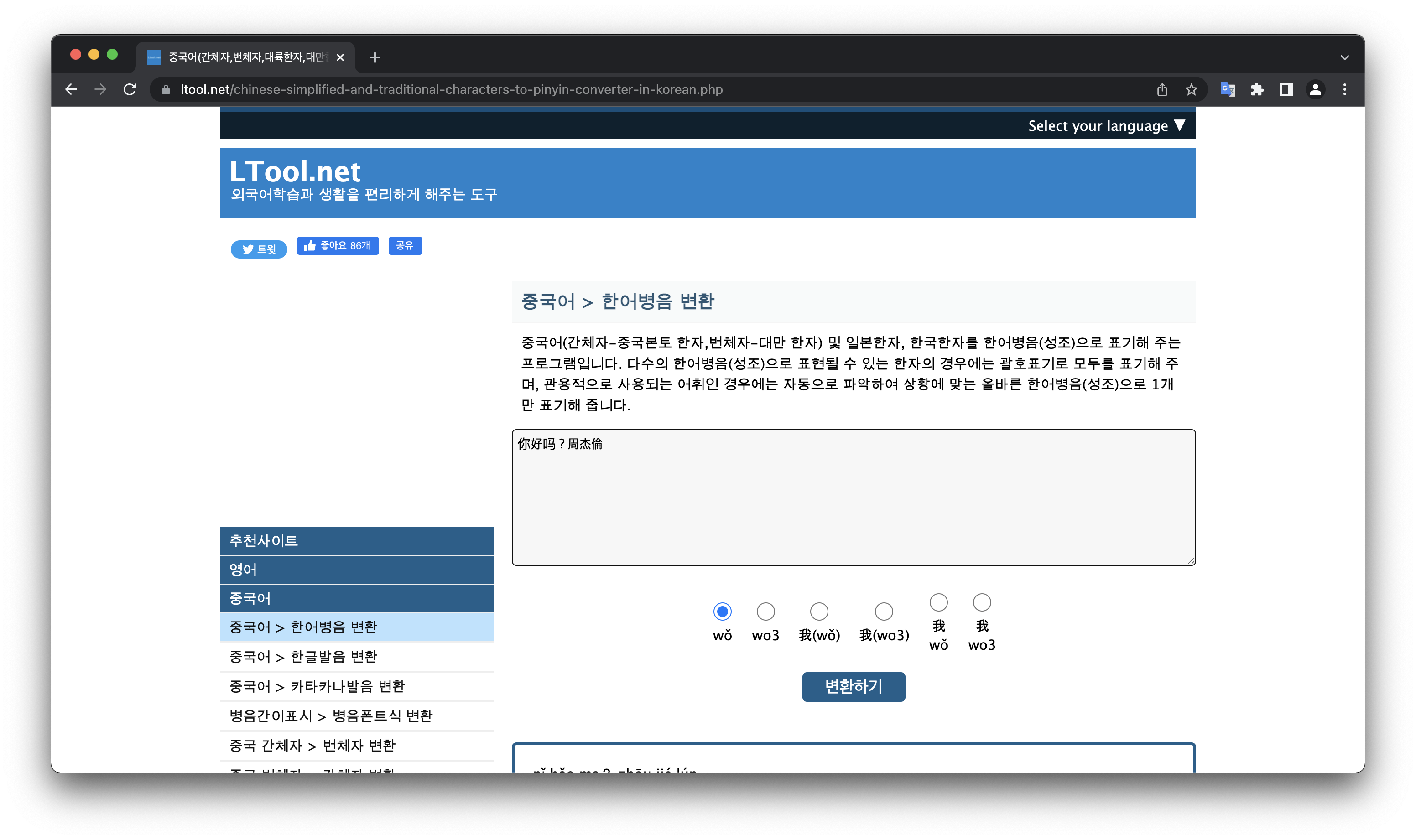중국어(간체자-중국 본토 한자, 번체자-대만 한자) 및 일본 한자, 한국 한자를 한어병음(성조)으로 표기해 주는 프로그램입니다.