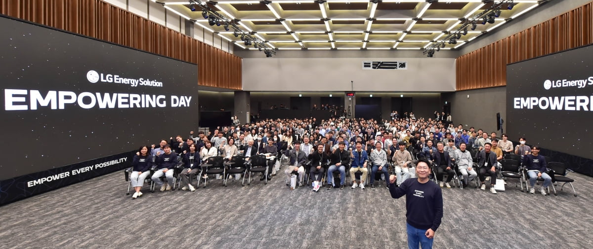LG에너지솔루션은 7일 서울 마곡 LG사이언스파크에서 구성원을 대상으로 비전 공유회를 열고 새 기업 비전 '에너지로 세상을 깨우다'(Empower Every Possibility)를 선포했다. LG에너지솔루션이 2020년 말 출범 이후 기업 비전을 발표한 것은 이번이 처음이다.이날 비전 공유회는 김동명 LG에너지솔루션 사장 및 각 사업부 경영진, 300여명의 구성원이 직접 참석한 가운데 온라인으로 생중계됐다.