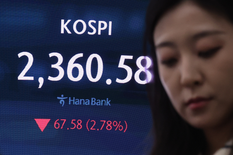 9일 한국거래소에 따르면 코스피는 전 거래일 대비 67.58포인트(p)(2.78%) 하락한 2360.58로 장을 마감했다. 이로써 코스피는 지난해 10월 31일(2277.99) 이후 종가 기준 최저치를 기록했다.