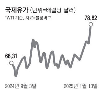13일(현지시간) 뉴욕상업거래소에서 거래된 서부텍사스산원유(WTI) 2월물은 전 거래일 대비 2.25달러(2.94%) 오른 78.82달러에 거래를 마감했다. 이는 지난해 8월 12일 이후 가장 높은 수치다. 글로벌 벤치마크인 브렌트유 3월물은 1.25달러(1.56%) 상승한 81.01달러에 거래됐는데 종가 기준으로 지난해 8월 26일 이후 가장 높은 수준이다.