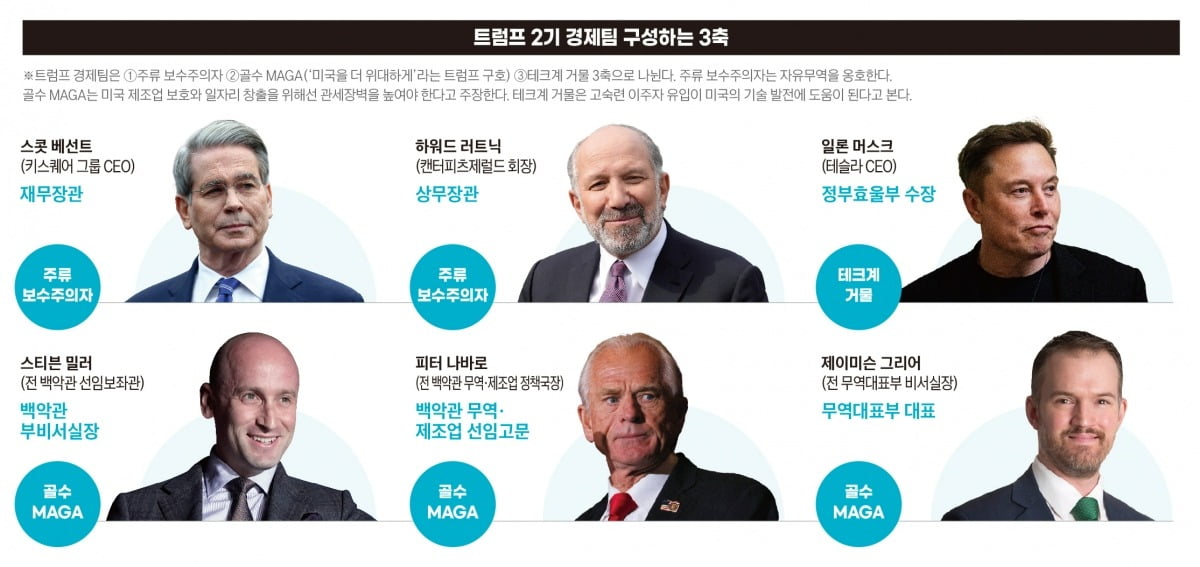 트럼프 경제팀은 미 경제 부활이란 목적을 달성하는 과정에서 단기적인 증시 충격과 공포는 어쩔 수 없다는 태도도 견지하고 있다. 관세를 지연시키되 포기하지는 않는 모습이다. 실시간 주식시장을 확인하며 소방수 역할을 했던 트럼프 1기 때와 대비된다.