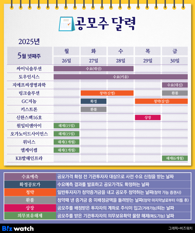 5월 마지막 주 공모주 일정이 왔어요.
