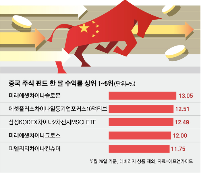 성적도 좋은 편이다. 최근 1개월 사이 중국 주식 펀드의 평균 수익률은 7.43%로 나타나 에프앤가이드가 분류한 전체 국가별 주식 펀드 중 가장 높았다. 연초 이후 기준으로는 일본, 인도, 베트남, 러시아 등 대부분 펀드가 마이너스 수익률을 기록 중인 가운데 중국 주식 펀드는 4.42%의 평균 수익률을 기록했다.