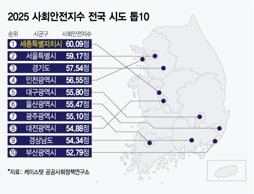 [2025 사회안전지수-살기 좋은 지역] ①전국 17개 시·도 사회안전지수 2년째 1위..서울시 2위
