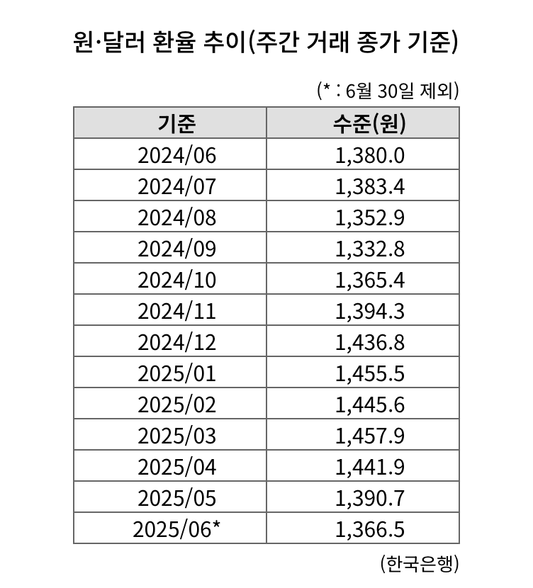 6월 평균 원·달러 환율 1360원대로 ‘뚝’