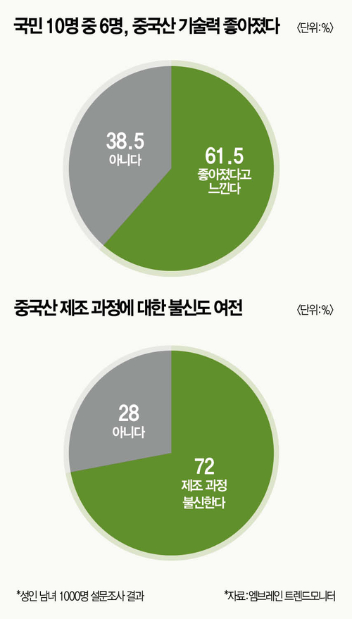 최근 중국산 전자제품의 기술력이 향상되고 있음을 체감하는 소비자 비중이 증가한 것으로 나타났다. 일부 소비자 사이에선 중국산 제품이 가격과 성능 측면에서 ‘합리적 선택지’로 여기는 여론도 강했다.