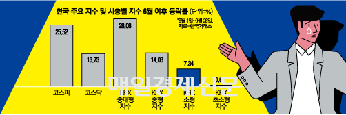 28일 한국거래소에 따르면 코스피 랠리가 시작된 지난 6월부터 이날까지 KRX 초소형 TMI 지수는 0.67% 오르는 데 그쳤다. 초소형주의 상승폭은 같은 기간 25.52% 오른 코스피에 한참 못 미쳤을 뿐만 아니라 코스닥(13.73%)과 비교해도 턱없이 낮았다.