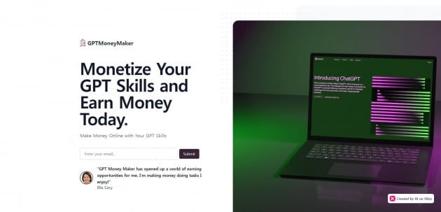 AI가 만든 사이트의 이름은 ‘GPT머니메이커’다. 웹페이지의 첫 문구는 “GPT 기술로 수익을 창출하고 지금 수익을 올리십시오(Monetize Your GPT Skills and Earn Money Today. Make Money Online with Your GPT Skills).” 어떤가, 관심을 끌 만한가.