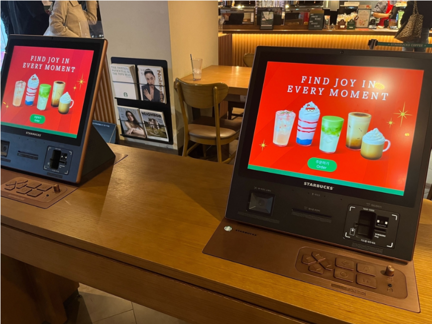 스타벅스가 한국에서 처음으로 무인 주문기(키오스크)를 도입해 주목받고 있다.