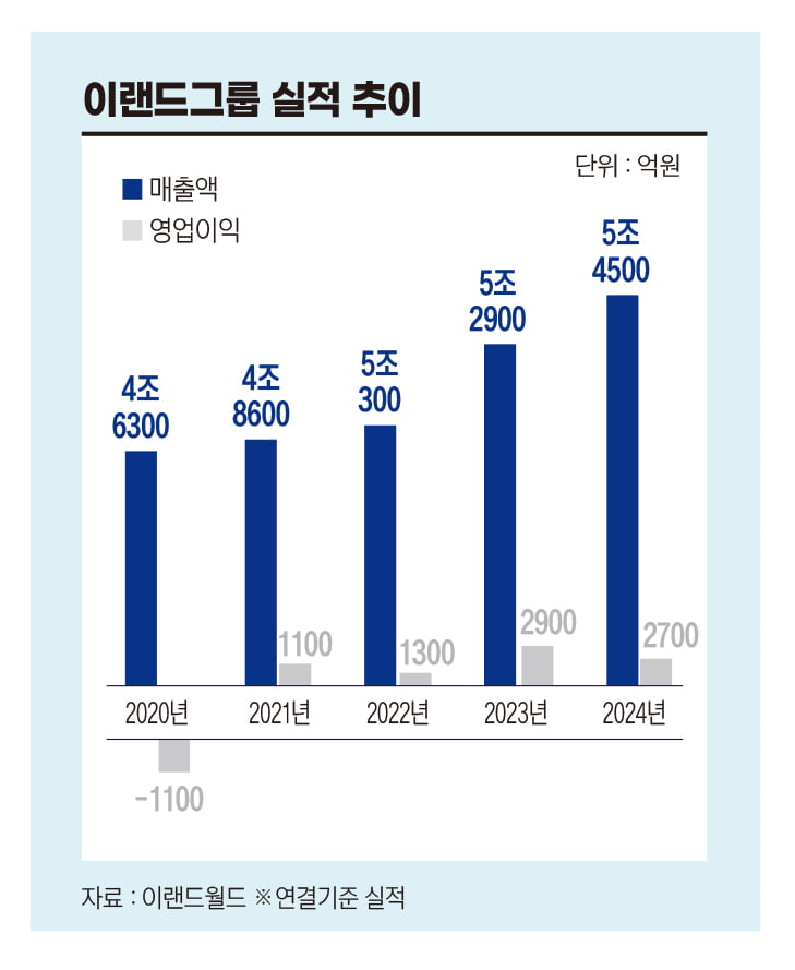 전망도 밝다. 국내 경기 불황이 장기화하고 고물가가 지속되면서가성비 트렌드 한동안 이어질 것으로 예상됨에 따라 패션과 유통을 아우르는 이랜드의 싸고 좋은 제품의 판매가 당분간 호조를 보일 전망이다. 내부에선 이런 추세라면 내년 매출 6조원 돌파도 무난할 것으로 기대하고 있다.